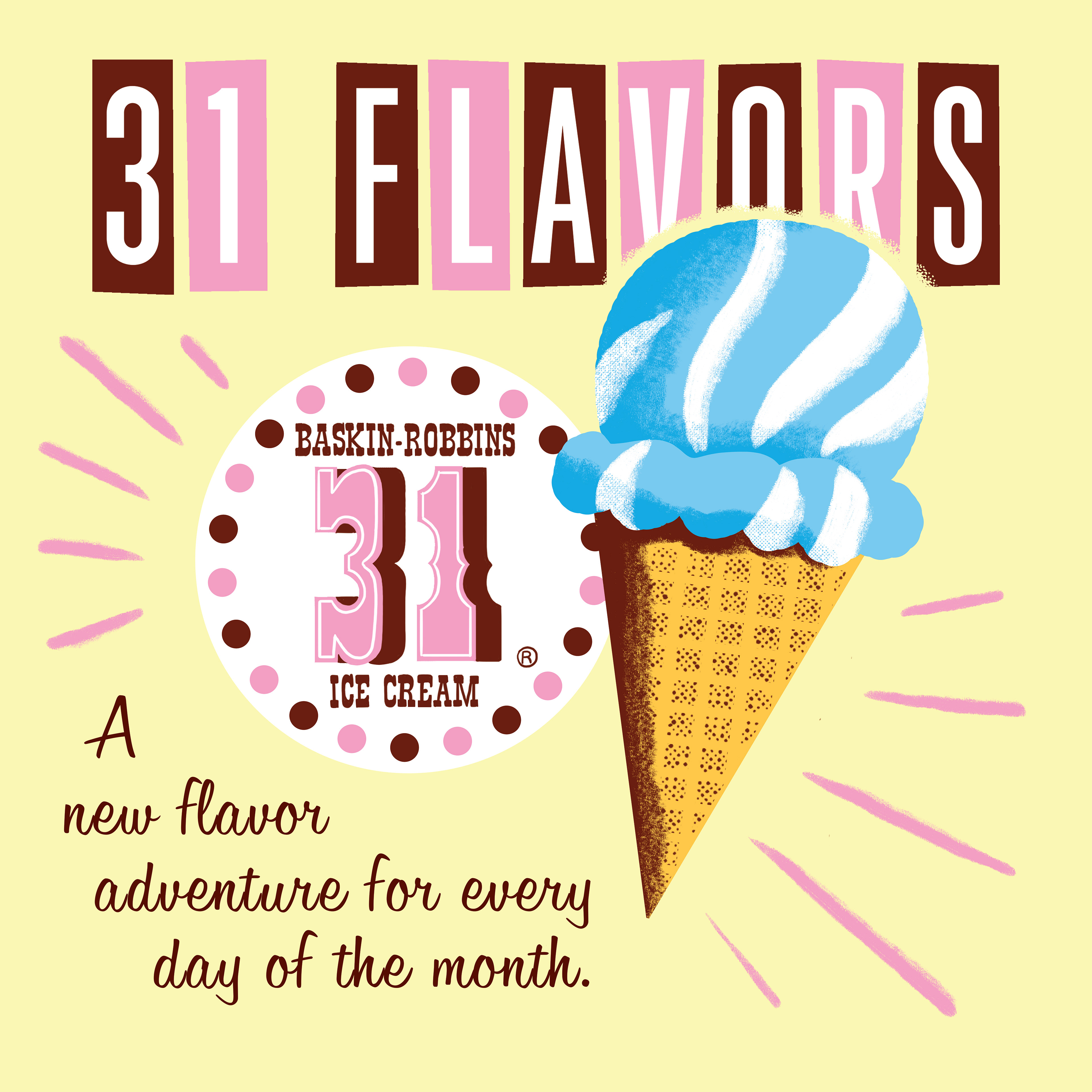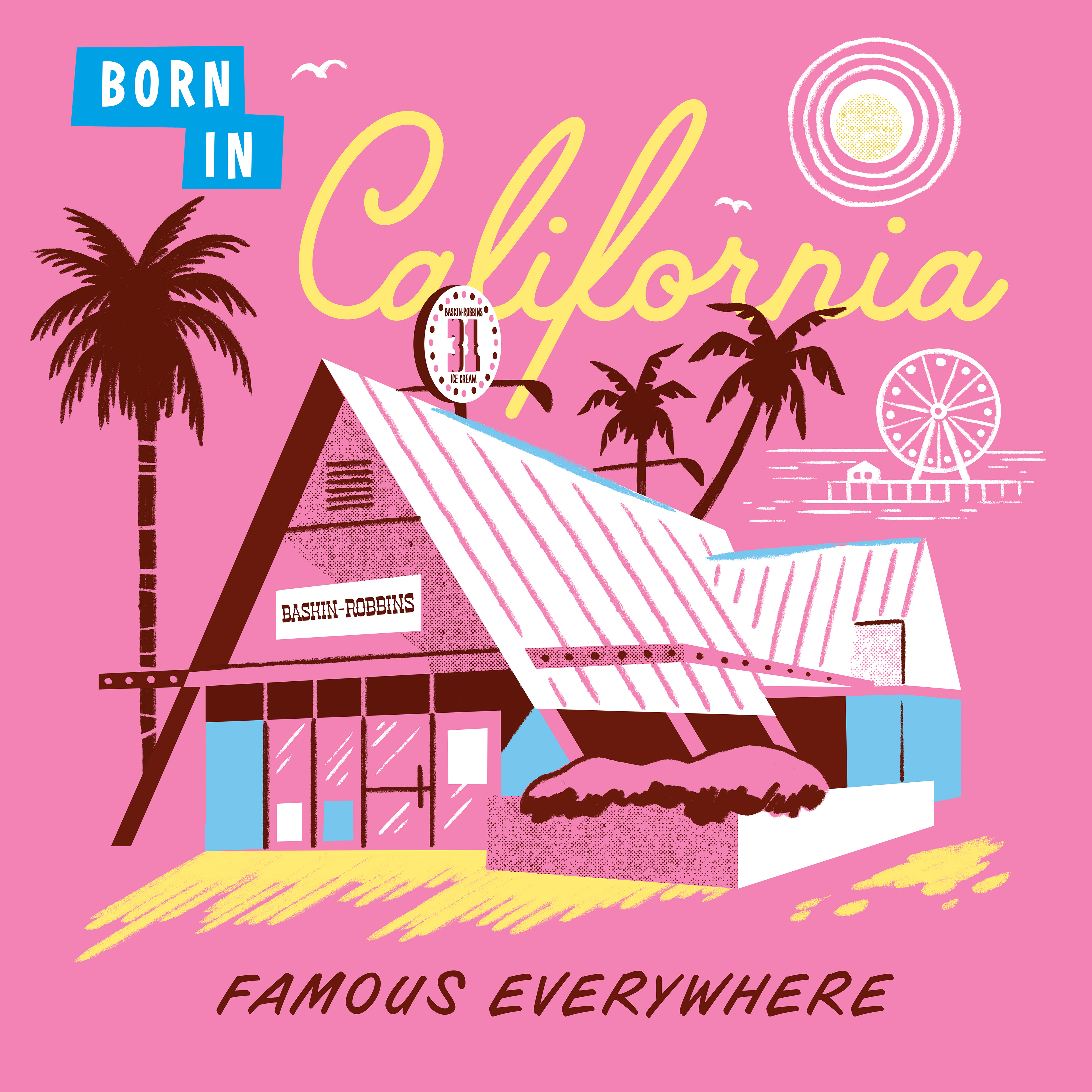We worked with an amazing illustrator for this series of vintage-inspired illustrations that showcase the history of Baskin-Robbins. Each illustration represents a part of Baskin Robbins' history to be displayed in their foreign storefront locations.