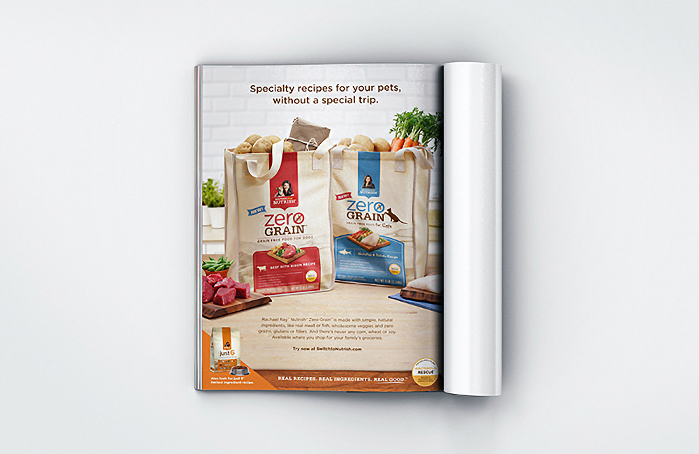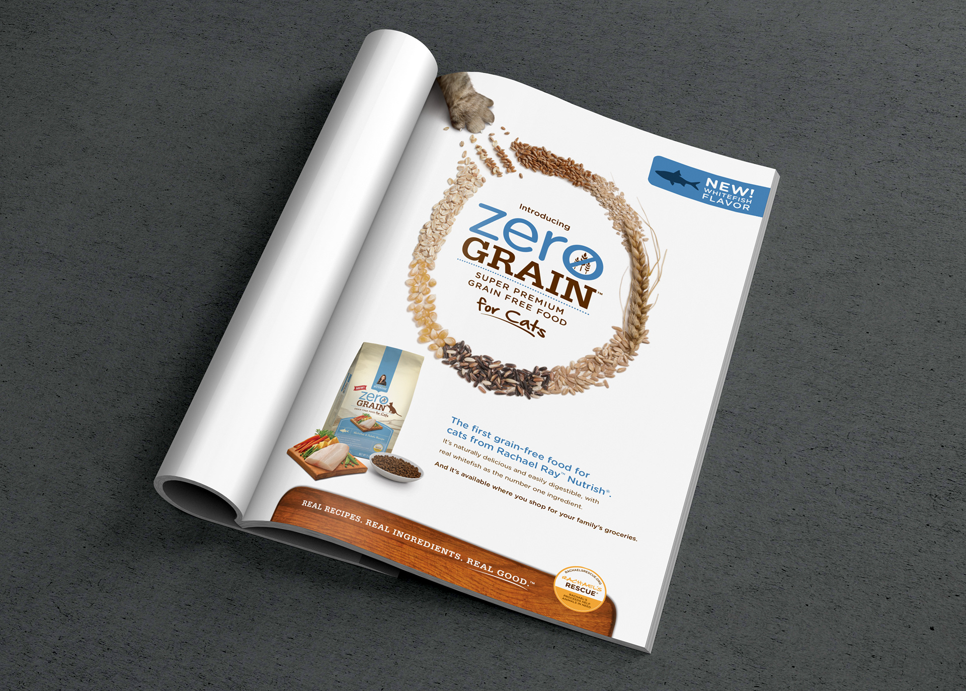 Print advertisements to promote the Nutrish brand's new line of cat food.